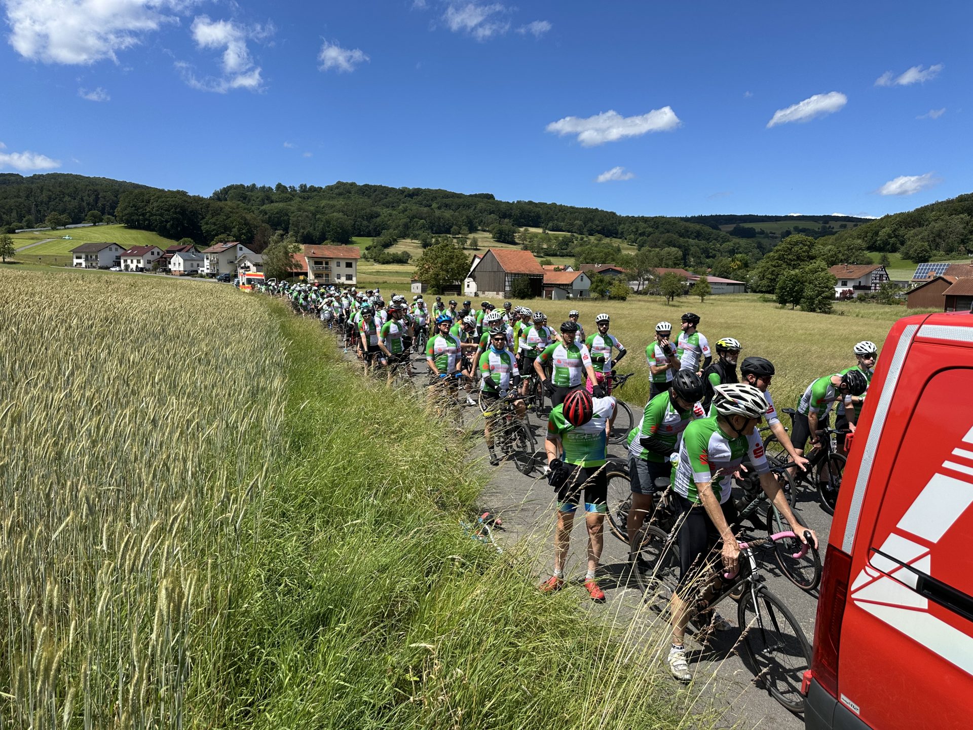 Kilometern mit 680 Höhenmetern sowie eine mit 36 Kilometern mit 930 Höhenmetern. Die geführte Rennradtour ging über 102 Kilometer. Verschiedene Wanderstrecken führten rund 140 Teilnehmer zum Zielort am Hochstädter Haus.